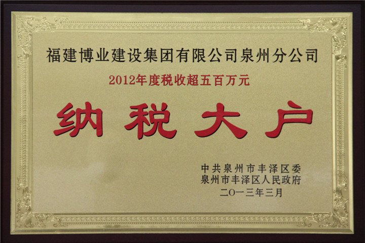 2012年度税收超过五百万纳税大户(泉州市丰泽区)