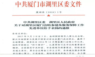 喜讯:我司获中共湖里区委、湖里区人民政府发文通报表扬